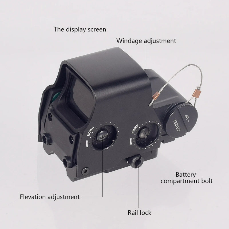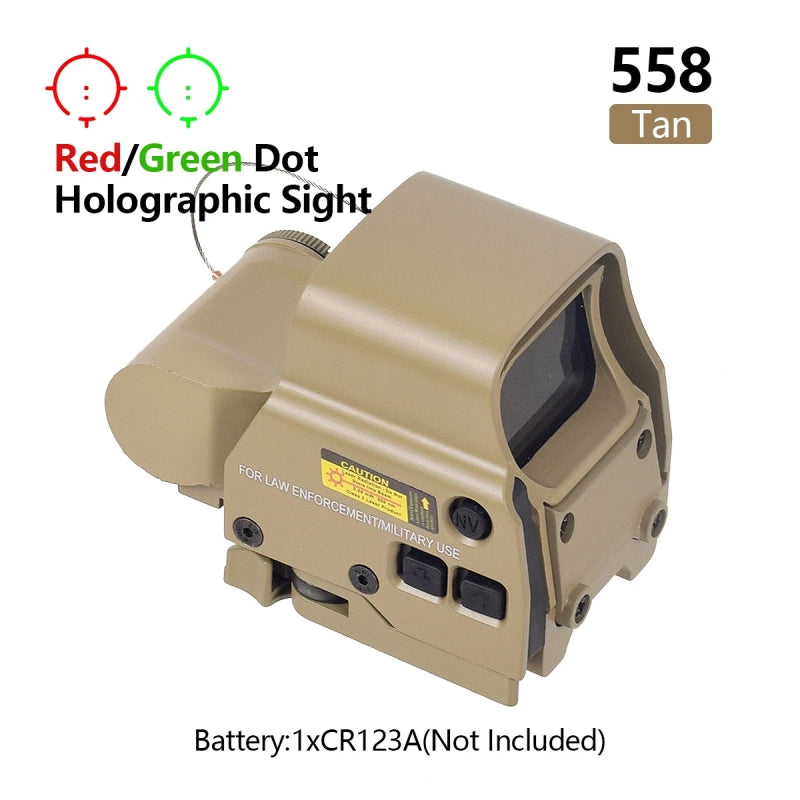 | 558 Features:Weight :420g Reticle Type :Red Dot and Green Dot Color :Black/Tan Rail Type: 5/8" 20mm Weaver rail Resettable windage and elevation adjustment.Integrated 5/8" 20mm Weaver rail. Battery:1*CR123A battery(not included) |